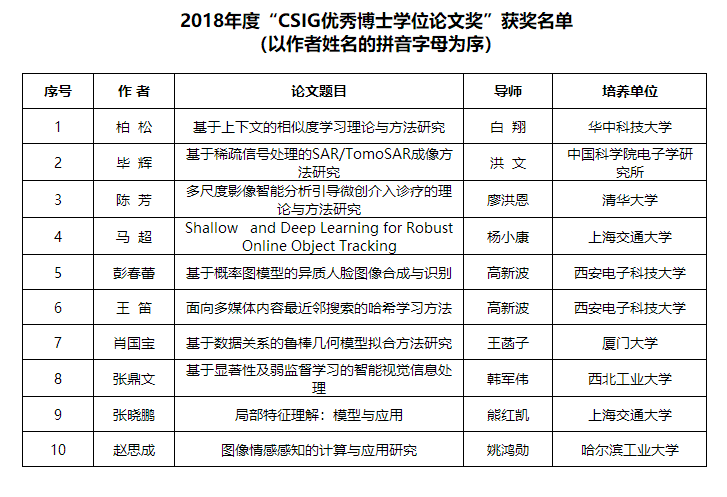 (”CSIG优秀博士学位论文“获奖名单)