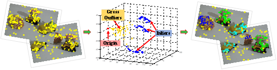 王菡子课题组研究发现,潜在语义空间Latent Semantic Analysis (LSA)能够有效地分析模型拟合问题中数据之间的关联,进而极大地降低时间复杂度。为此,提出了一种基于潜在语义空间的鲁棒模型拟合方法。该方法建立在LSA的基础上,通过分析LSA的数据分布,有效去除离群点的干扰,接着对内点数据进行分类。相比于目前已有的最佳拟合方法,所提出的拟合方法从新的视角去发现模型拟合问题中数据点的内在关联,能够有效地提升拟合性能,并显著降低时间复杂度。该工作前后用了三年半的时间。