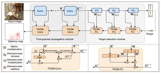 最近几年随着深度学习的火热发展,对神经网络的设计和应用得到了广泛的研究,但是对神经网络的理解长期被当做黑盒子问题。该论文利用视觉显著性,尝试从视觉层面对卷积神经网络进行解释,或者说对CNN进行可视化。在现有的可视化技术中,大多数方法要么难以产生精细的显著性图(如CAM),要么产生的细粒度的显著性图不具有目标选择性(如GradBP)。也就是说,使用一次梯度反向传播,生成同时满足目标选择性、细粒度的、且可靠的显著性图,在该领域是一个具有挑战性的问题。为了缓解这个问题,该论文重新研究了网络内部的梯度流,发现纠缠的语义和原始权重可能会干扰与目标相关的梯度的传播。受这些观察结果的启发,该论文提出了一种新颖的视觉显著性方法,称为目标选择梯度反向传播(TSGB),它利用校正操作,有效地强调目标类,并进一步有效地将显著性传播到输入空间,从而生成具有目标选择性和细粒度的显著性图。在ImageNet和Pascal VOC上进行了大量的定性和定量实验,结果表明,该方法比其他竞争性方法获得了更准确、更可靠的结果。代码已开源并将进一步完善https://github.com/123fxdx/CNNvisualizationTSGB。