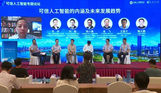 报告会后,上海交通大学人工智能研究院常务副院长、国家杰青获得者杨小康教授,浙江大学上海高等研究院常务副院长、人工智能研究所所长、国家杰青获得者吴飞教授,福建省闽江学者、厦门大学特聘教授、模式分析与机器智能研究中心主任王菡子教授,云南大学教授、IET Fellow陶大鹏教授,以及上海人工智能实验室主任乔宇研究员、科大讯飞研究院执行院长刘聪博士进行了圆桌讨论,针对可信人工智能的内涵及未来发展趋势进行深度探讨,为行业智能化、数字化转型落地提供策略思路和落地方案。