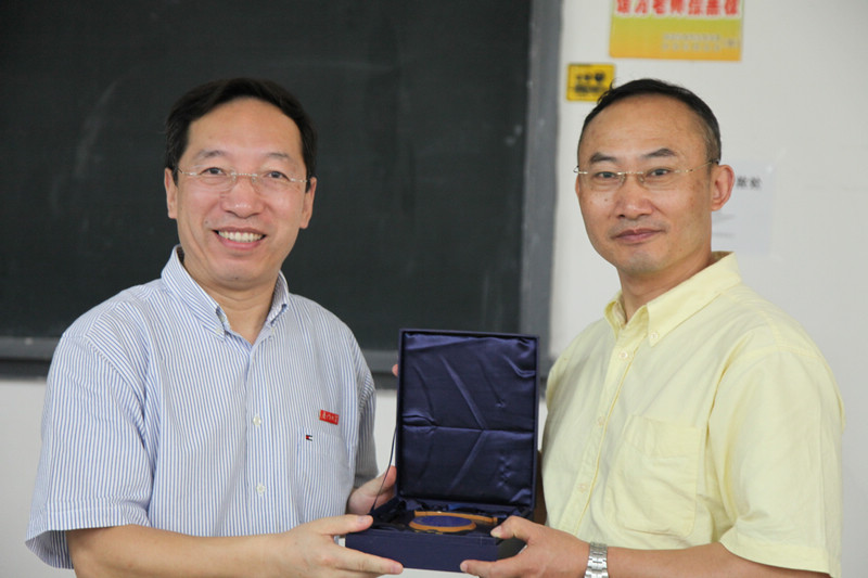 李军院长为沈鸿教授颁发南强讲座纪念牌